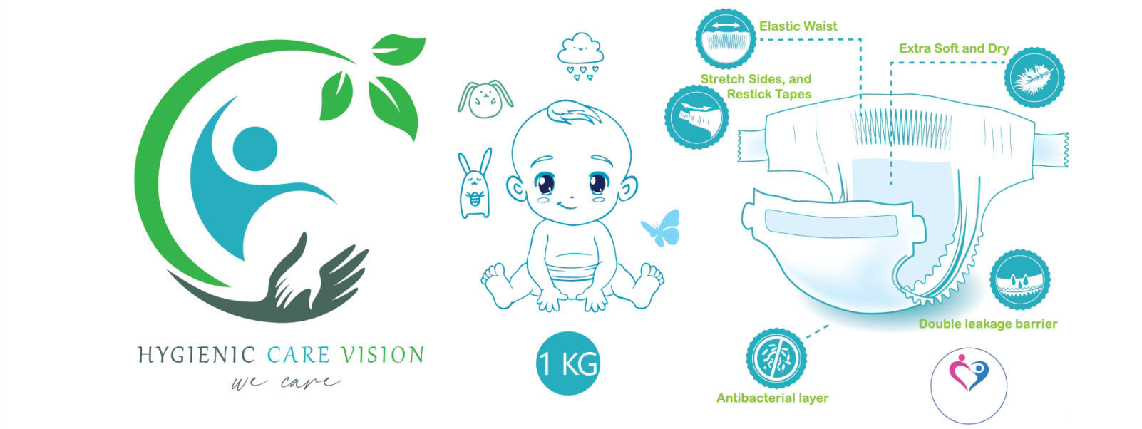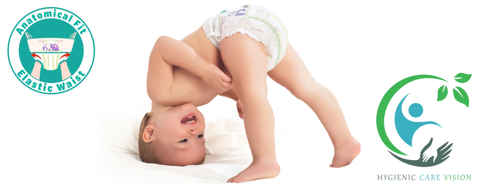 Hygienic Care Vision, We Care Baby Diapers are thoughtfully crafted for the needs of growing babies. Our design supports each developmental stage, from newborn to the completion of bladder training. We want you to cherish your baby's childhood just as much as they enjoy it.